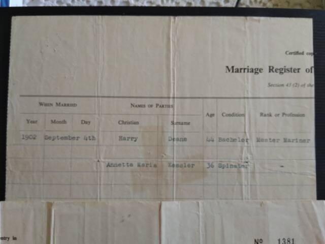 Below is a official copy from the Civil registration of fice of Henry Deans and Anetta Maria Kesler's marriage certificate from 1965. The word 'spinster' means an older unmarried woman.