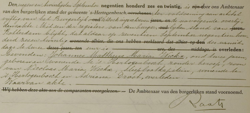 Nicolaas Maria Weckx is geboren te 's-Hertogenbosch op 3 juni 1903.