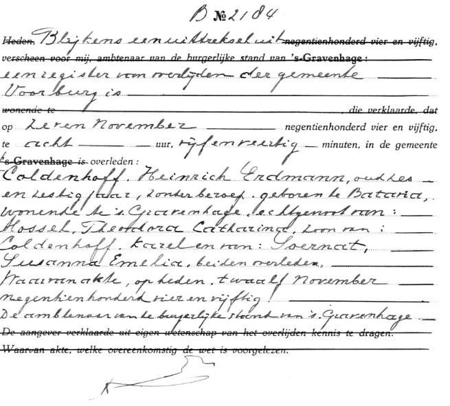Heinrich died in Voorburg on November 7, 1954. He was then 66 years old. Theodora died in The Hague on 20 March 1958. She was then 65 years old. The declaration is made on March 22 by commercial representative Rudie Jan Claassen.